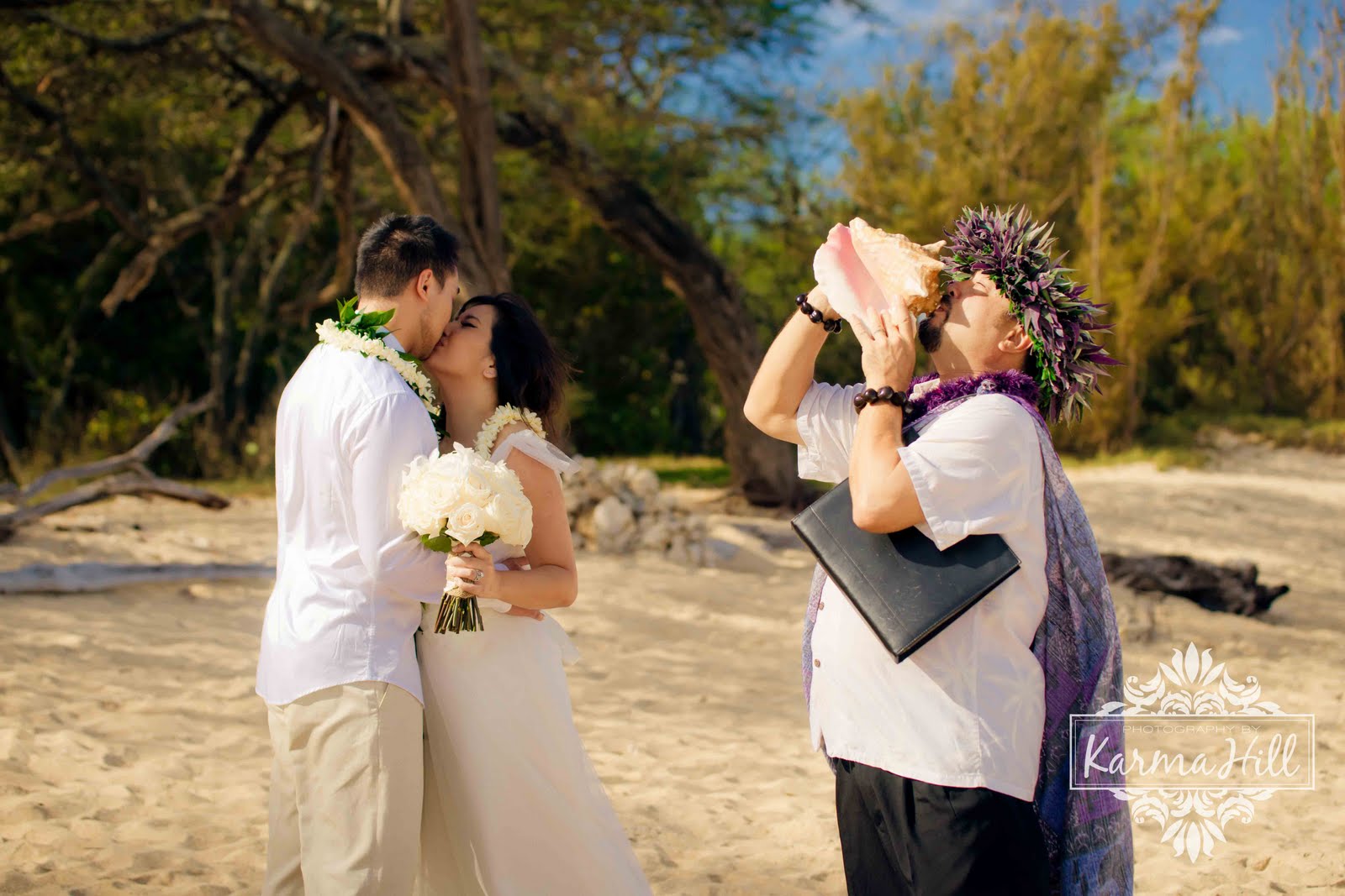 Thu and Eric were married on Baldwin beach on Maui's beautiful and rustic North shore. Thu really wanted bright blue water, and after she saw a recent blog post of mine on this beach, she knew it was the perfect beach for her Maui wedding. It really was a perfect day for a wedding, with beautiful clear skies, light winds and a mostly empty beach. Besides the blue water we took advantage of the awesome coral fort someone has built there and some of the glowing green areas just off the beach. Congrats to you both and thank you so much for inviting me to be a part of your wedding day!!
