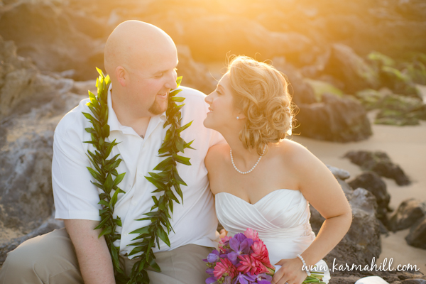 We had a great time with the fun and adorable Melinda and Tim on their Maui wedding. They were married just before sunset at Napili Bay Beach in West Maui. The couple who met through family has a lot of fun together, constantly laughing and just enjoying life together. They wanted a low key, special event that was just the two of them, so they could focus on each other and have a relaxing honeymoon to boot! Mahalo Melinda & Tim for choosing Photography by Karma Hill!