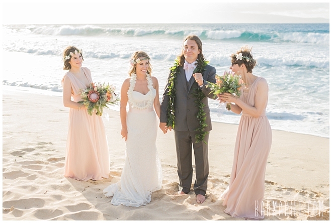 For a daring pair from Montana, Hawaii holds a few new adventures. After surviving the open door helicopter tour, there was nothing left to do but take the leap in to a new level of their relationship. The holy matrimony level. These two aren't afraid though. There's nothing to fear when you're marrying your best friend. And just as she's the sun to his big sky moon and stars, they will compliment, support, and complete one another for years to come. It also helps to have the tremendous support of loved ones on their side such as their respective sisters/'women of honor.' We are so glad we got to be there as their Maui Wedding Photographer to capture this remarkable duo. The beaming smiles say it all, really, and we couldn't be happier for them. Congratulations Risa and Chase! Best wishes on your journey ahead. Warm Aloha!!!